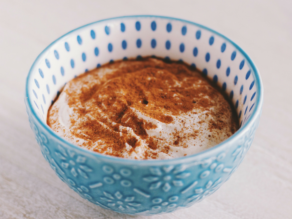Add a little cinnamon a cinnamon-sugar blend or powdered sugar to the yogurt if you like.